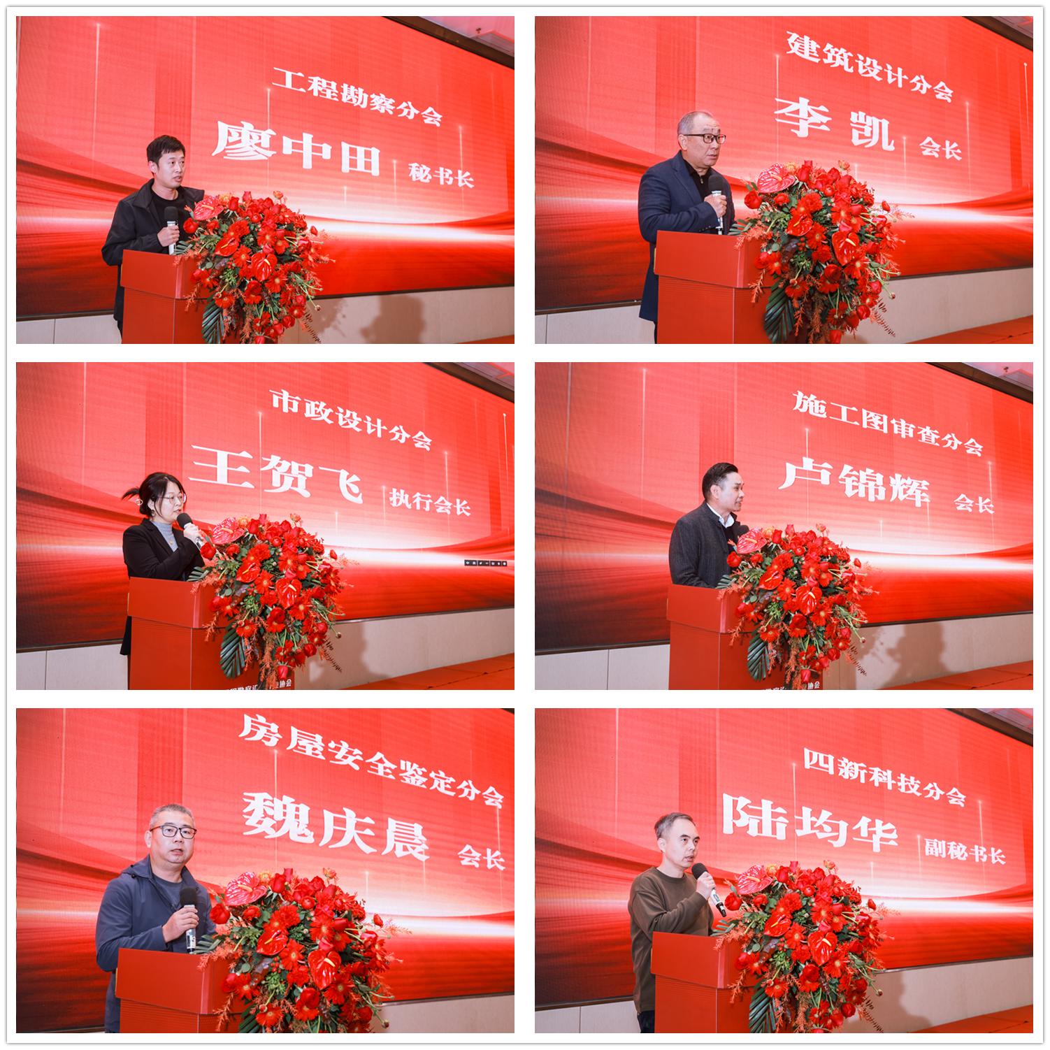 随后,协会的六大分支机构代表—工程勘察分会秘书长廖中田、建筑设计分会会长李凯、市政设计分会执行会长王贺飞、施工图审查分会会长卢锦辉、房屋安全鉴定分会会长魏庆晨、四新科技分会副秘书长陆均华—依次上台进行2025年工作总结汇报,向广大会员单位全景展示了各分会的工作成效。在年度评优表彰环节,经全体会员无记名投票,由王滔会长现场揭晓并颁发了“优秀分支机构”“优秀分会会长”“分会秘书长”等奖项,充分肯定各分支机构在服务会员、推动行业发展中的突出贡献。